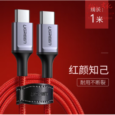 绿联(UGREEN)60186/US294 Type-C公对公闪充数据线 1米红色 SKU:yzwhyp325245