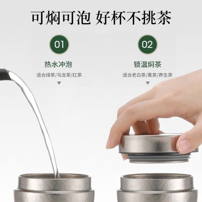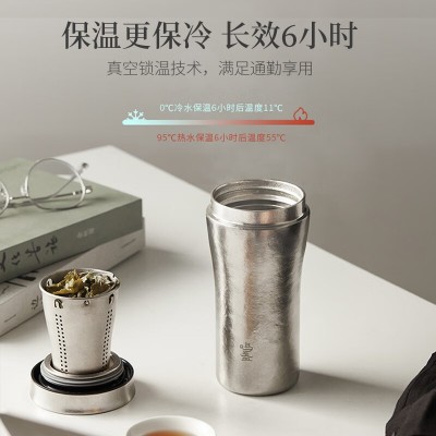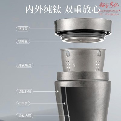 鸣盏 纯钛保温杯双层真空男女办公泡茶养生便携车载钛水杯 MZ8007 SKU:yzwhyp204724