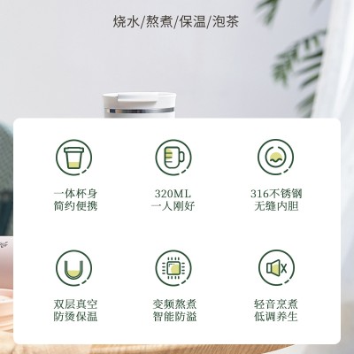 鸣盏 多功能便携式烧水壶电热水杯加热保温迷你小型旅行熬煮养生杯MZ-028 梨花白 SKU:yzwhyp204725