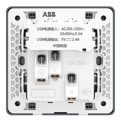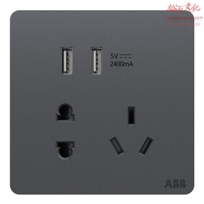 ABB 隽致 带双USB充电二位二三极插座 10A/灰色 AZ293-MG SKU:yzwhyp204730