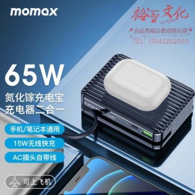 摩米士MOMAX氮化镓GaN双模无线充电宝充电器65WPD双向快充笔记本移动电源15000mAh带插头旅行充电套装黑色 SKU:yzwhyp325269