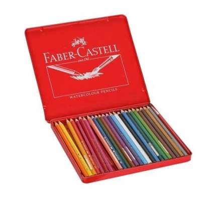 辉柏嘉(Faber-castell)水溶性彩铅笔彩色铅笔24色手绘涂色专业美术生绘画笔套装115925红铁盒装+彩绘本
