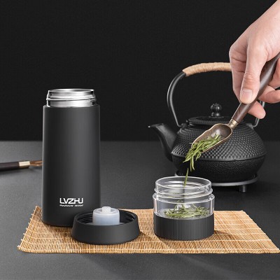 绿珠(LVZHU) 360ml保温杯双层真空不锈钢水杯 茶水分离水杯便携功夫茶杯办公礼品杯K1587 SKU:yzwhyp204758