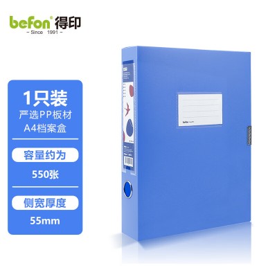 得印(befon) 55mmA4塑料档案盒粘扣文件盒党建资料盒财务凭证收纳盒办公用品蓝色0189 SKU:yzwhyp204835