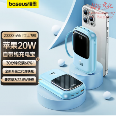 首页 > 电气设备 > 蓄电池及充电装置 > 倍思 Q电充电宝 自带线20000毫安时 支持苹果20WPD快充小巧便携移动电源 数显适用iPhone14/13ProMax/12/XR 蓝 SKU:yzwhyp111852