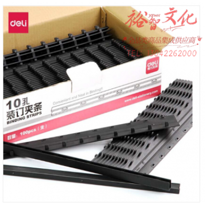 得力3827-10孔装订夹条(黑)300*10mm(100支/盒) SKU:yzwhyp325407
