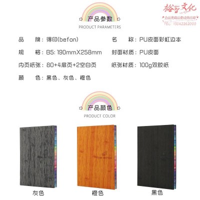 得印(befon) B5彩虹边笔记本子软皮面本加大加厚文具记事本会议记录薄商务笔记本子软面抄灰色4457 SKU:yzwhyp204850