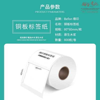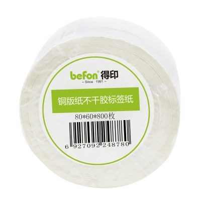 首页 > 纸及纸质品 > 纸及纸板(不包含复印纸) > 得印(befon) 不干胶标签纸铜版纸80mm*60mm800枚单排条码纸打印贴纸 SKU:yzwhyp204898