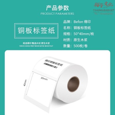 首页 > 纸及纸质品 > 纸及纸板(不包含复印纸) > 得印(befon) 不干胶标签纸铜版纸50mm*40mm 500枚单排条码纸打印贴纸 SKU:yzwhyp204901