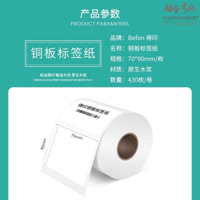 首页 > 纸及纸质品 > 纸及纸板(不包含复印纸) > 得印(befon) 不干胶标签纸铜版纸70mm*90mm 430枚单排条码纸打印贴纸 SKU:yzwhyp204902