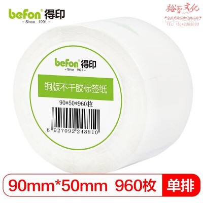 首页 > 纸及纸质品 > 纸及纸板(不包含复印纸) > 得印(befon) 不干胶标签纸铜版纸90mm*50mm960枚单排条码纸打印贴纸 SKU:yzwhyp204907