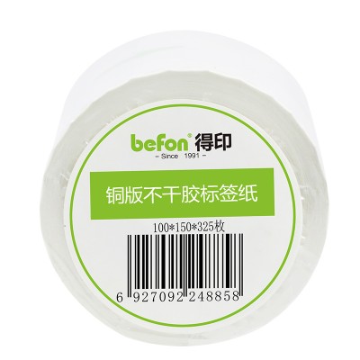 得印(befon) 不干胶标签纸铜版纸100mm*150mm325枚单排条码纸打印贴纸 SKU:yzwhyp204912
