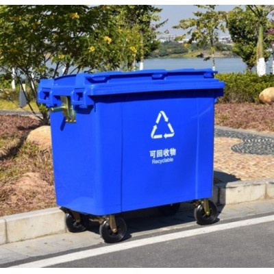 660L户外环卫垃圾桶(国产新料熟胶蓝色-可回收垃圾桶)