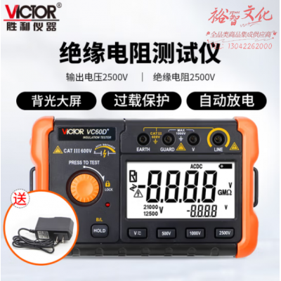 胜利仪器(VICTOR)兆欧表 绝缘电阻测试仪1000V/2500V 数字摇表 VC60D+配电源适配器 SKU:yzwhyp325757