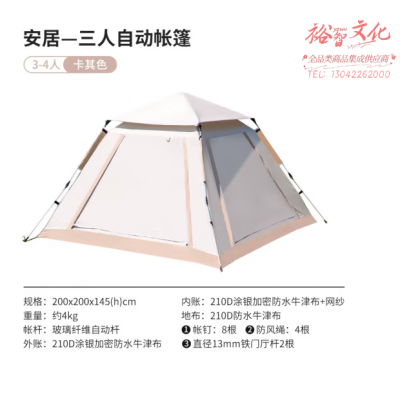 思凯乐SCALER全自动折叠帐篷户外露营野餐便携防晒公园三人帐篷 卡其色 安居 SKU:yzwhyp325868