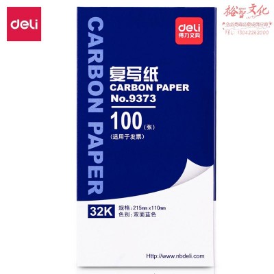 得力9373薄型复写纸(增值税发票专用)(蓝)-32K 215*110mm(100张/盒) SKU:yzwhyp326007
