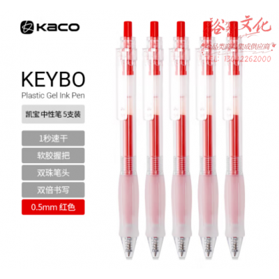 KACO红色按动中性笔透明笔杆舒适软握手0.5mm子弹头改错批改作业红色签字笔 5支装红色 SKU:yzwhyp326137