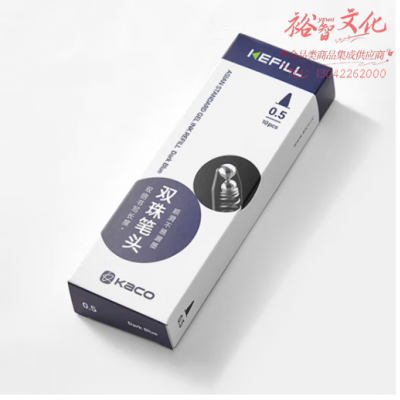 KACO亚规Kefill双倍书写长度按动中性笔芯0.5mm双球珠子弹头签字笔替芯蓝黑色不漏墨10支装/盒 K1622 SKU:yzwhyp326147