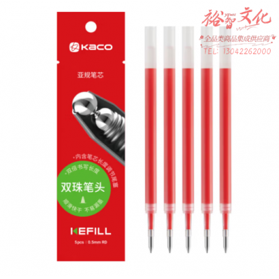 KACO亚规通用按动中性笔笔芯签字笔替芯 0.5mm红色 (Bullet tip) (5支OPP袋装) SKU:yzwhyp326149