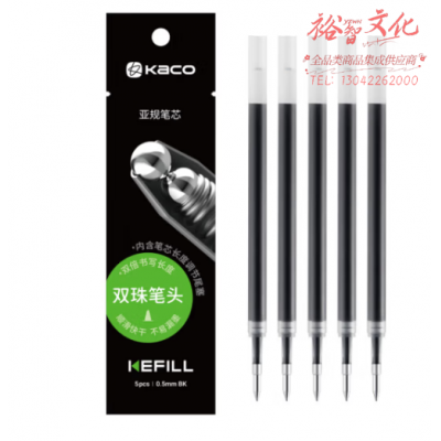 KACO大容量亚规通用按动中性笔芯 0.5mm速干子弹头黑色可适配大部分日系中性笔(5支装) SKU:yzwhyp326150