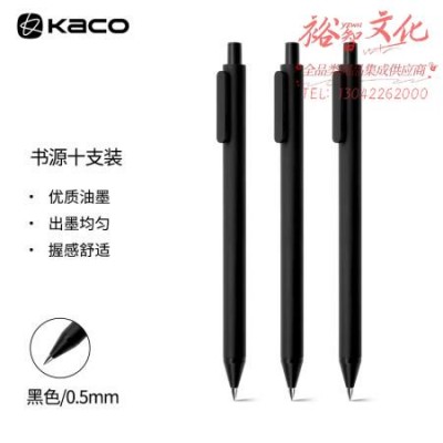 KACO书源中性笔0.5mm黑色按动笔子弹头签字笔水笔办公用品10支/盒K1015 SKU:yzwhyp326163