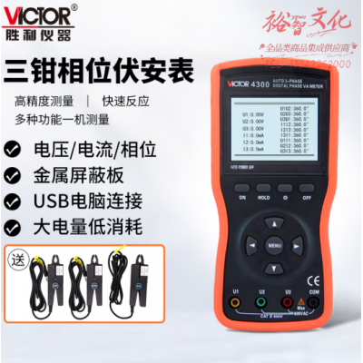 胜利仪器(VICTOR)智能型三钳数字相位伏安表 VC4300 多功能三相相序检测仪 功率表 SKU:yzwhyp326517