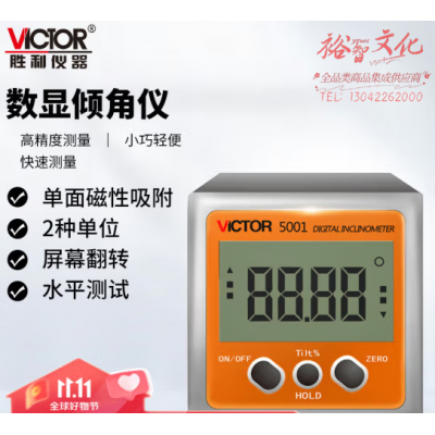 首页 > 建筑建材 > 电工电料 > 胜利仪器(VICTOR)数显倾角仪 高精度电子角度尺 带磁性水平仪 测量仪 角度规 倾角盒 VC5001 单面带磁铁 SKU:yzwhyp326582