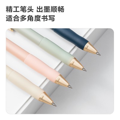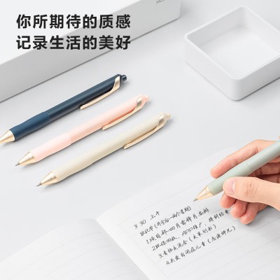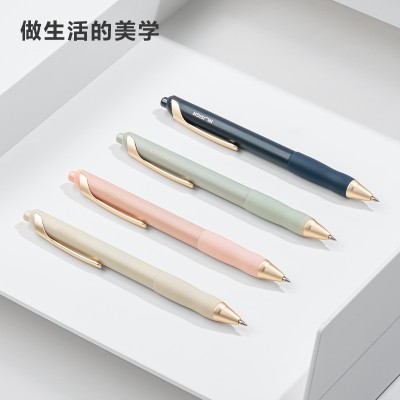 得力 纽赛臻顺滑按动中性笔低重心金属铜头中性笔0.5mm子弹头岸砂白33785 SKU:yzwhyp205074