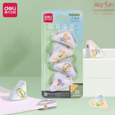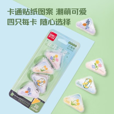 首页 > 办公用品 > 文具 > 得力 4只卡通三角夹 30页小号边角夹 学生票夹 资料文件收纳 防翘边防卷边 混色TP532 SKU:yzwhyp205100