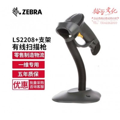 斑马(ZEBRA) LS2208 一维有线条码扫描枪 扫描器 快递仓库盘点条码枪 标配+支架 SKU:yzwhyp326749