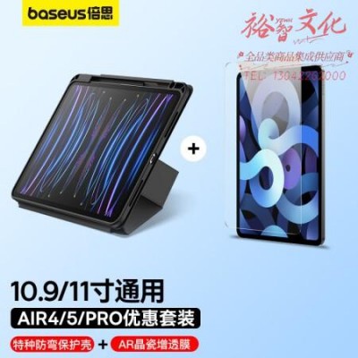倍思 ipad钢化膜+保护壳套装 AR晶瓷高清钢化膜+磁吸多折支撑保护套 适用air5/air4/pro-10.9/11英寸 SKU:yzwhyp111913