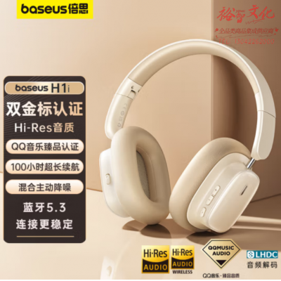 倍思H1i双金标版 头戴式蓝牙耳机真无线主动降噪 100小时超长续航 Baseus Bowie H1i白色 SKU:yzwhyp111959