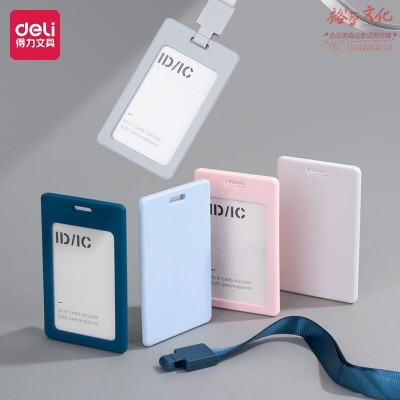 得力 竖式证件卡套 滑动式卡扣 硅胶材质员工证学生证公交卡套饭卡胸牌厂牌/门禁挂绳 单只装浅蓝 PZ33 SKU:yzwhyp205126
