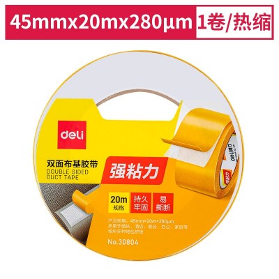 得力(deli) 36卷/箱 双面胶强力双面布基胶带黄色45mm*20m*280μm1卷装地毯胶带高粘无痕固定30804 SKU:yzwhyp205171