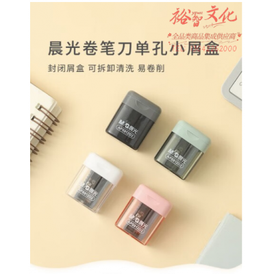 晨光单孔小屑盒卷笔刀便携小巧单孔手持封闭屑盒削笔刀削笔器易削学生学习开合方便简约风格APS912D2 SKU:yzwhyp326999