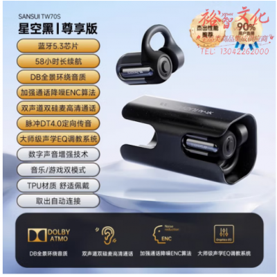 首页 > 广播、电视、电影设备 > 组合音像设备 > 会议、广播及音乐欣赏系统 > 山水(SANSUI)TW70S 骨传导概念蓝牙耳机 气传导开放式无线夹耳耳夹式不入耳运动跑步通话降噪适用于华为苹果 黑 SKU:yzwhyp327286