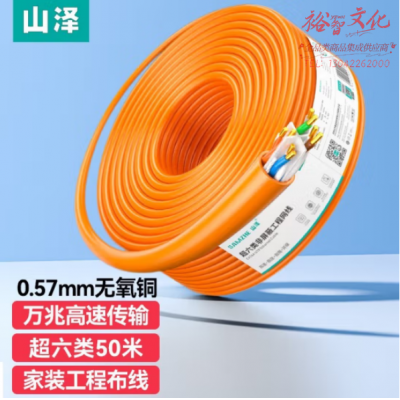 山泽(SAMZHE) U6A050 原装超六类非屏蔽网线 CAT6A类万兆高速 纯铜线芯 工程网络箱线 橙色 50米 SKU:yzwhyp327333