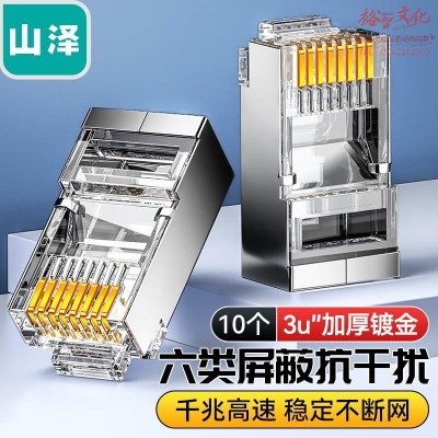 山泽SJ-P6610 六类RJ45水晶头 6类千兆工程级网络连接器 Cat6带屏蔽电脑8p8c网线接头镀金10个装 SKU:yzwhyp327380