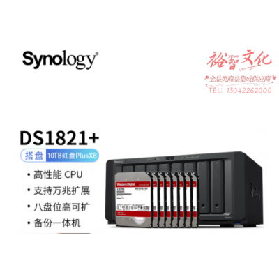 群晖(Synology)DS1821 搭配8块西数(WD) 10TB 红盘Plus WD101EFBX硬盘 套装 SKU:yzwhyp327390