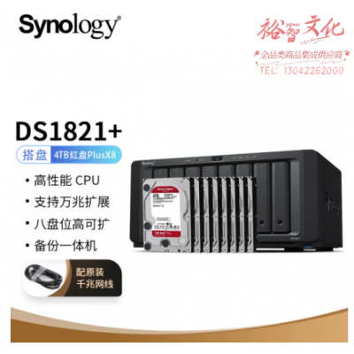 群晖(Synology)DS1821 搭配8块西数(WD) 4TB 红盘Plus WD40EFPX硬盘 套装 SKU:yzwhyp327402