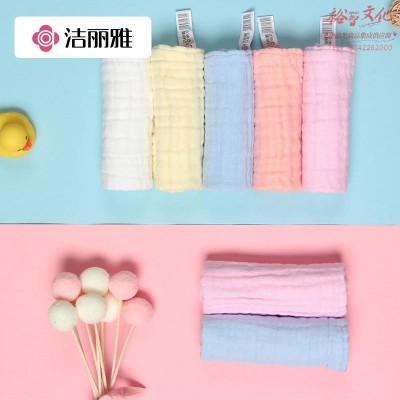 洁丽雅A类纯棉6层纱布口水巾 婴儿纱布毛巾方巾宝宝围兜洗脸巾手帕5条装 SKU:yzwhyp327425