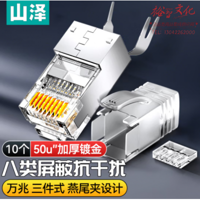 首页 > 信息化设备 > 水晶头 > 山泽(SAMZHE) 8010SJT 八类水晶头Cat8万兆网络网线水晶头 RJ45工程级电脑网线连接头 三件式装配 10个/盒 SKU:yzwhyp327456
