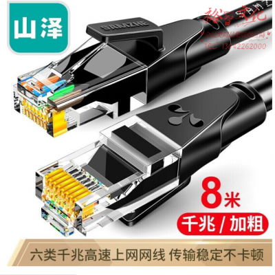 山泽WD6080 六类成品网线 CAT6类千兆极速8芯双绞 黑色8米 SKU:yzwhyp327461