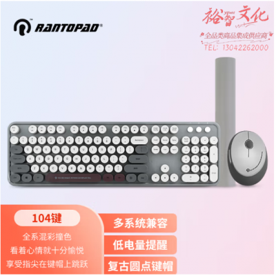 镭拓 Rantopad RF104无线键盘鼠标套装 办公键鼠套装 便携 仿古圆点键盘 鼠标 鼠标垫套装 寂静灰 SKU:yzwhyp327888