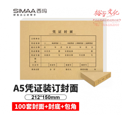 西玛(SIMAA)A5凭证装订封面 100套(封面+包角) FM131-100B 凭证封面包角 A4一半记帐凭证封皮(套) SKU:yzwhyp327914