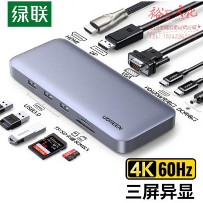 绿联CM280 Type-C扩展坞USB-C转HDMI/VGA转换器雷电3拓展坞分线器 70305 SKU:yzwhyp327935