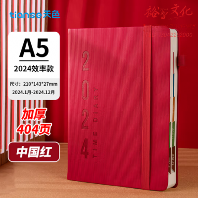 天色笔记本 记事本 A5 2024年日程本 效率手册 TS-4180 中国红 SKU:yzwhyp328097