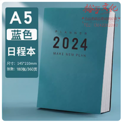 2024年日程本加厚商务办公软皮计划表每日效率手册 A5 羊巴皮2024 蓝色 SKU:yzwhyp328132