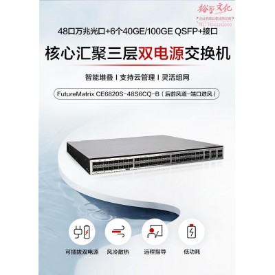 华为CE6820S-48S6CQ-B(后前风道-端口进风)三层数据中心双电源交换机48口万兆光+6个40GE/100GE光口 SKU:yzwhyp328155