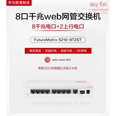 华为数通智选8口千兆web网管交换机S210-8T2ST 8口千兆电+1上行电口+1上行光口分线器集线分流器 SKU:yzwhyp328161